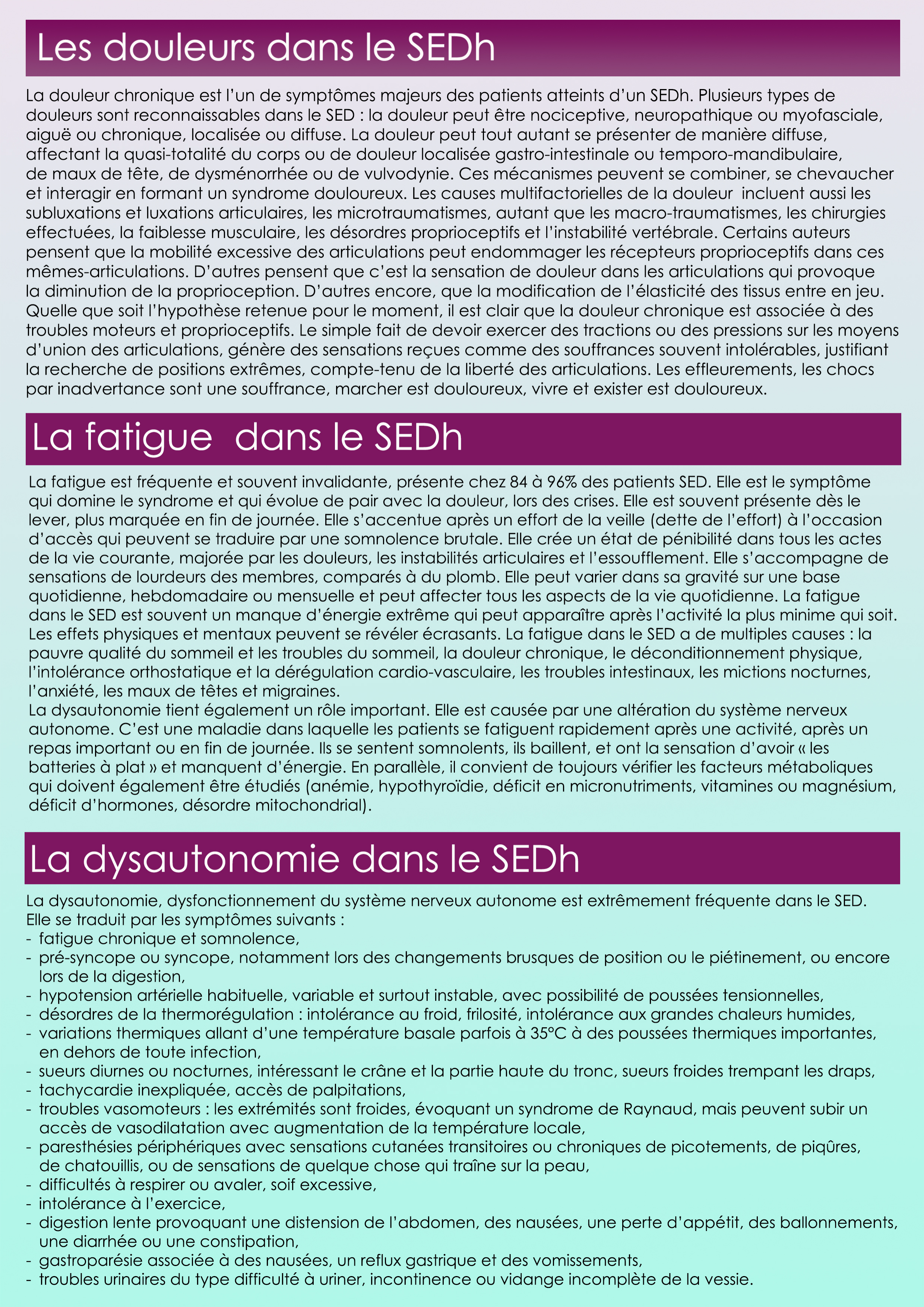 Le GERSED met à votre disposition un nouveau flyer sur le SEDh. Après l’explication des critères diagnostiques actuels dans le flyer disponible en cliquant ICI, voici une explication des symptômes rencontrés dans la pathologie.