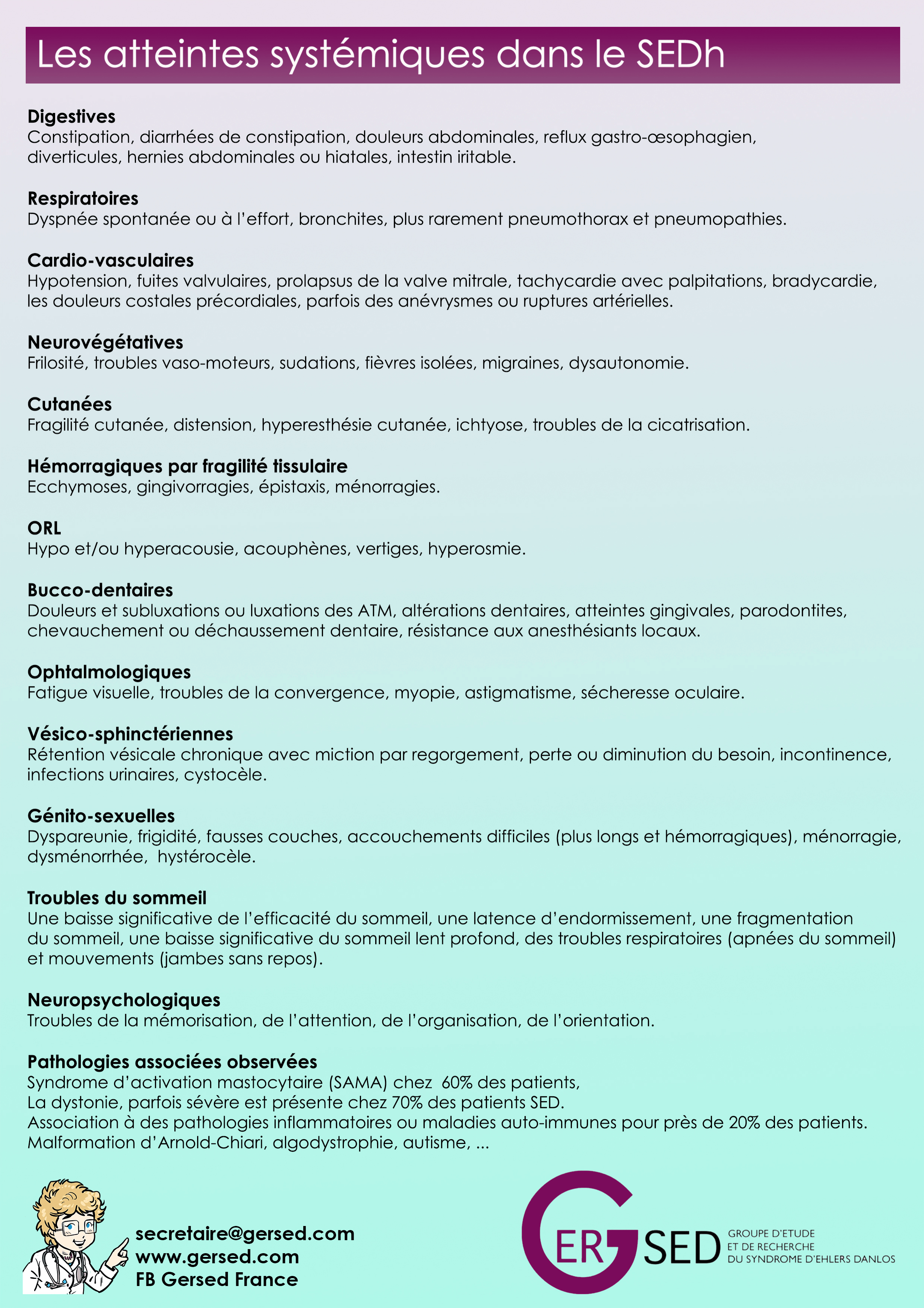 Un grand merci aux médecins du GERSED pour la mise à disposition de ce flyer pour une meilleure information et connaissance des SED.